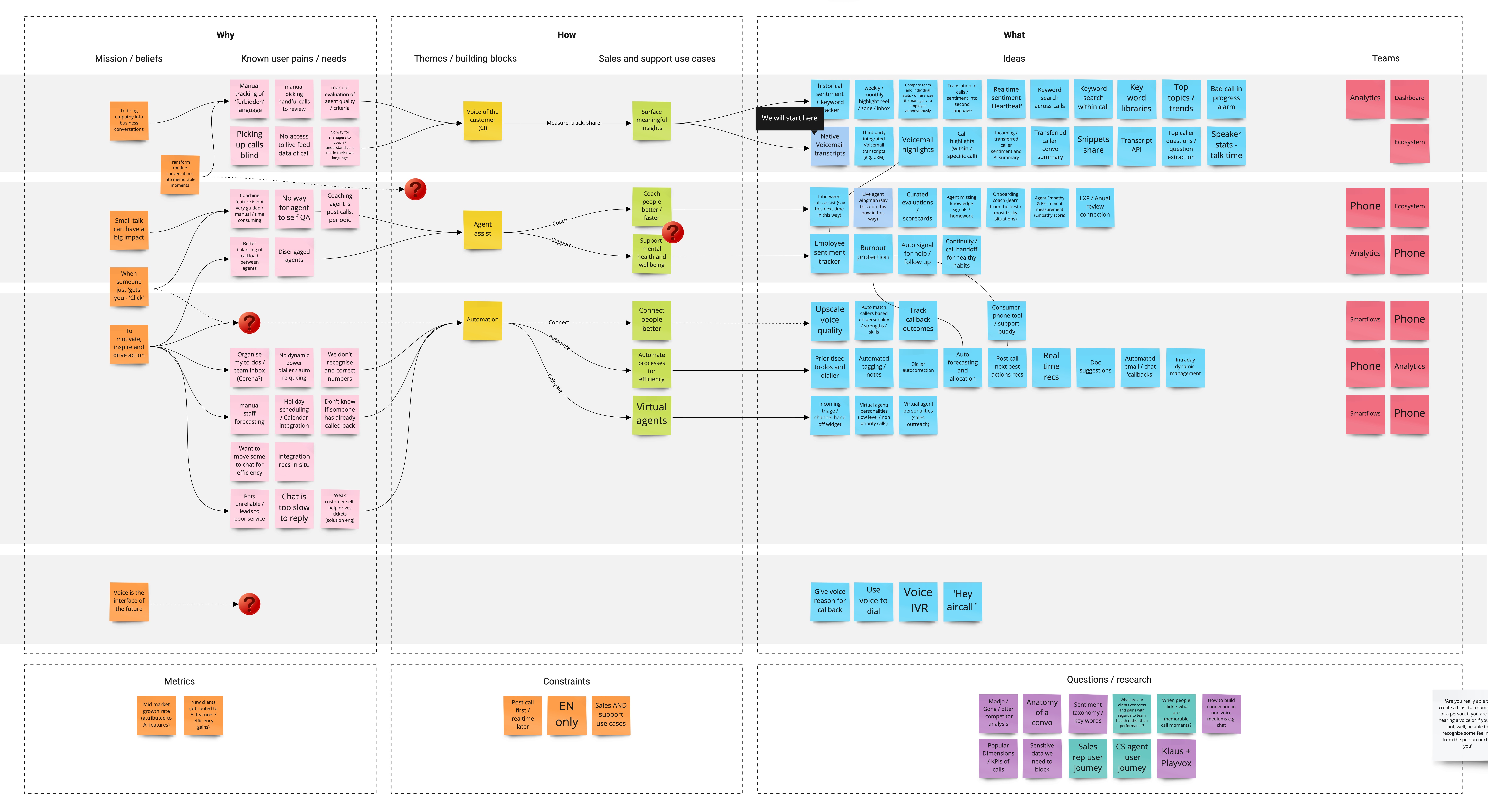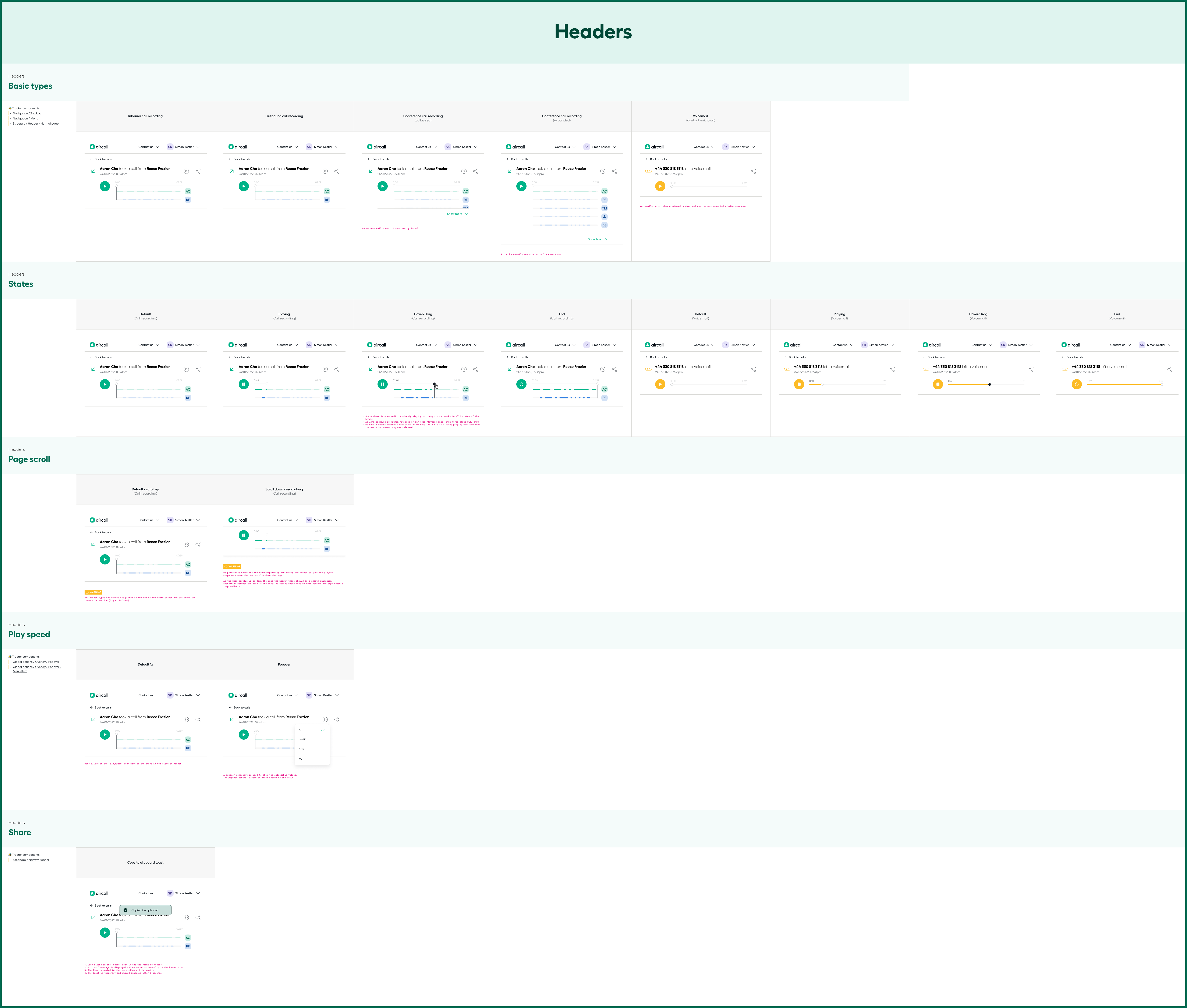 Aircall.io is a company that offers a simple online platform for sales and support staff to configure and manage their inbound and outbound calls. As part of of the companies strategic growth a new ‘Voice AI’ team was created to develop ways to incorporate machine learning and automation into the product. ‘AI driven transcriptions’ was chosen as the first foundation stone in this new strategic pillar and I lead the UX and UI approach as well as helping the team map the broader themes and opportunities in the AI space.